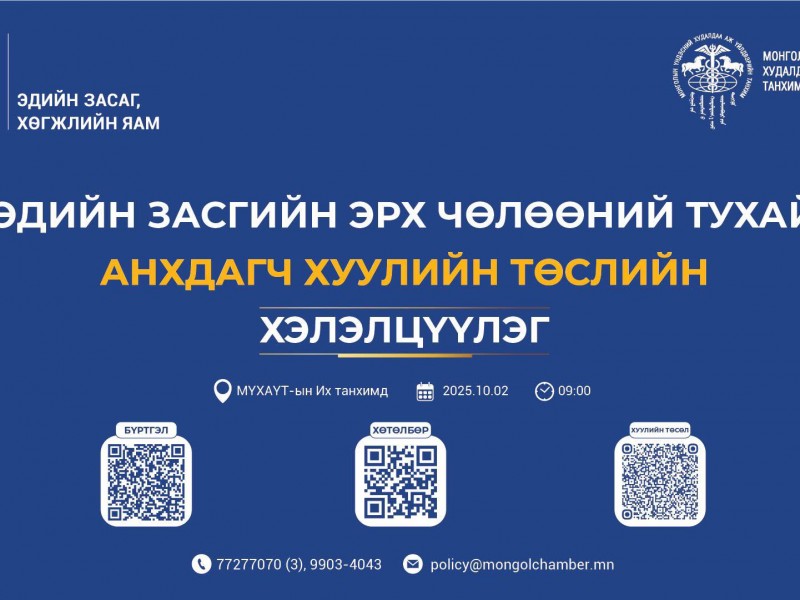 Эдийн засгийн эрх чөлөөний тухай анхдагч хуулийн төслийн олон нийтийн хэлэлцүүлэг болно