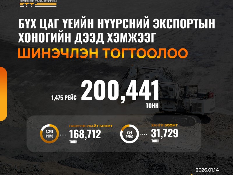 Монгол Улс 2025 онд 94.6 сая тонн нүүрс, 2.4 сая тонн зэсийн баяжмал экспортолж, төлөвлөсөн зорилтоо давуулан биелүүлжээ