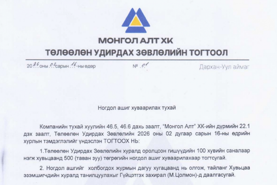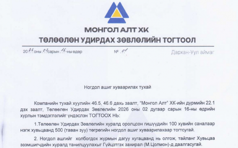 ЦЕМЕНТИЙН ҮНИЙГ ЗАХ ЗЭЭЛД ХАМГИЙН ХЯМДААР ТОГТООЛОО